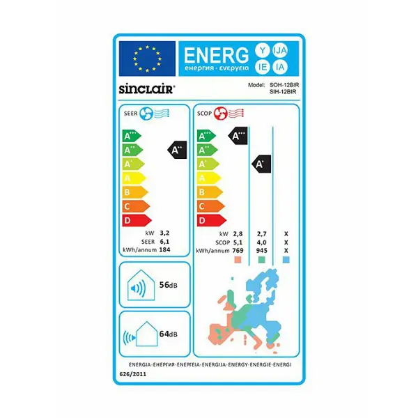 Klima Sinclair SIH/SOH 12BIMW, 3.2/3.4kW, A++ energijska klasa, WiFi, unutarnja jedinica 773x250x185mm, vanjska jedinica 732x550x330mm