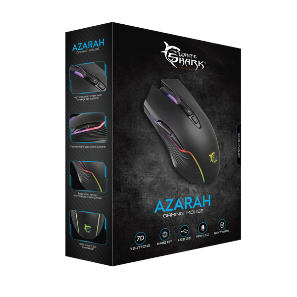 Miš White Shark Azarah GM-5003, žičani, gaming, 6400DPI, RGB, crni
