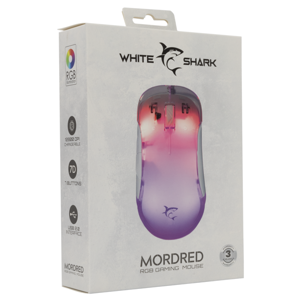 Miš White Shark GM-5017 Mordred, žičani, gaming, 12800DPI, RGB, bijeli