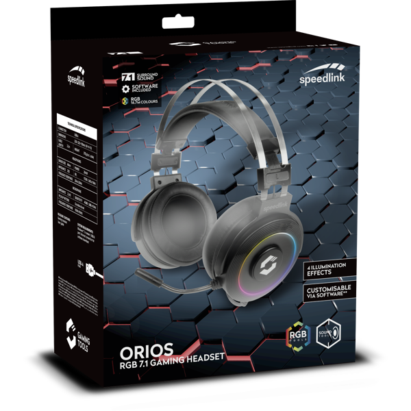 Slušalice Speedlink Orios, žičane, gaming, 7.1, mikrofon, over-ear, RGB, PC, PS4, PS5, crne