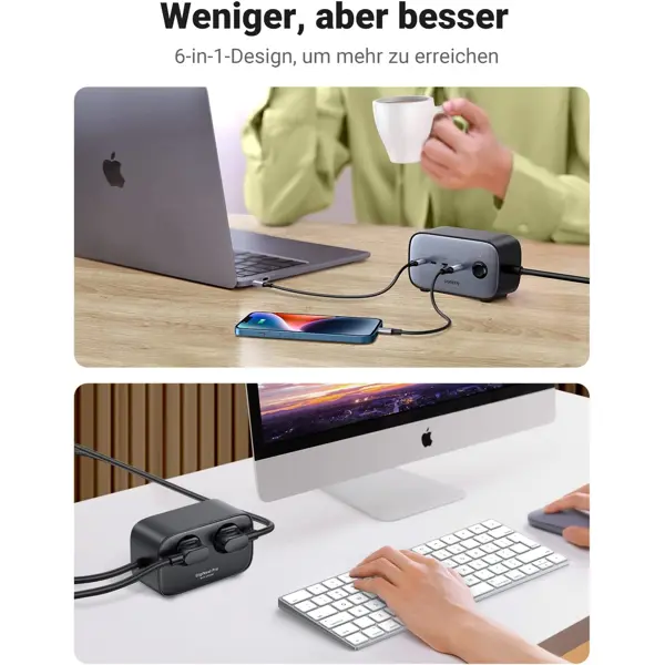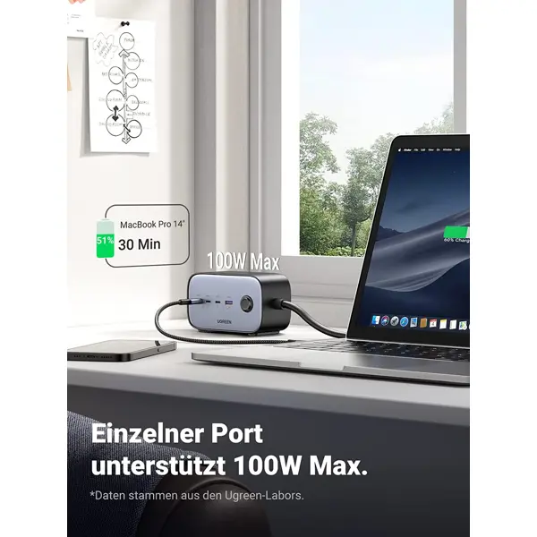 Strujni punjač Ugreen DigiNest Pro, 100W, USB-A, 3xUSB-C, 2xŠuko, sivi